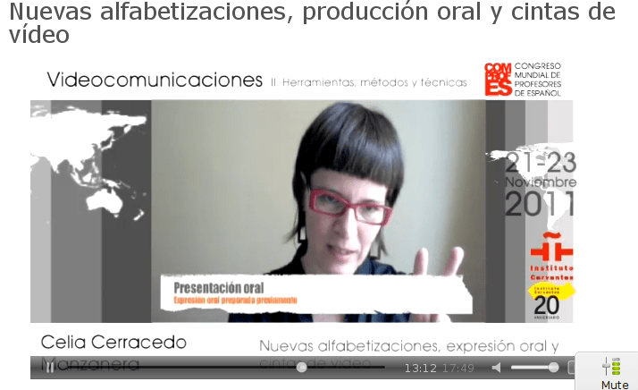 Una de las videocomunicaciones que más me ha gustado hasta ahora ha sido la de Celia Cerracedo Manzanera, que se tituló “Nuevas alfabetizaciones, producción oral y cintas de video”.