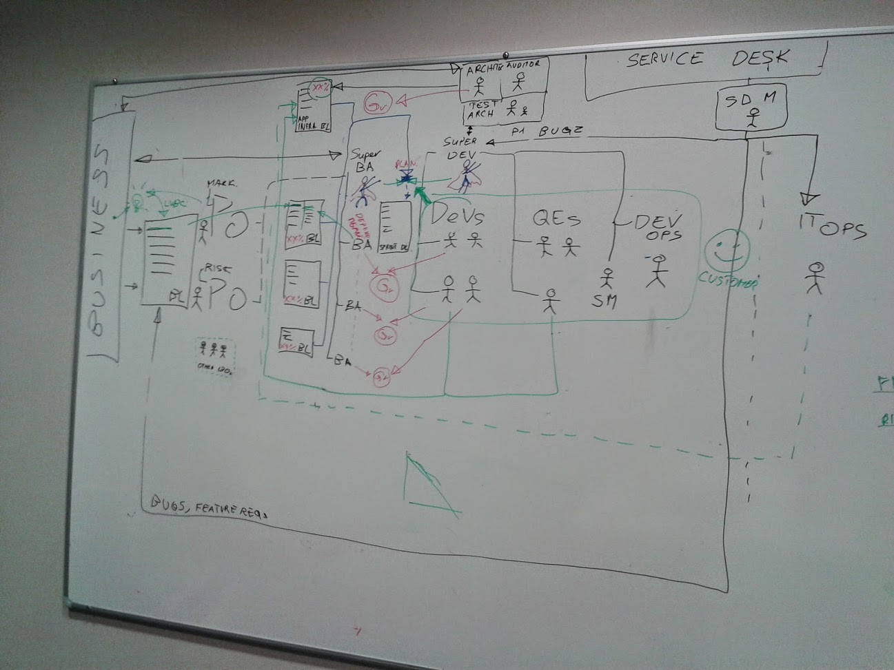 Mi responsabilidad en el nuevo proyecto al que me han asignado consiste en el análisis y diseño (inicialmente) del componente tecnológico de la empresa. En vista de que a mí me gusta poner manos a la obra enseguida, mi primer intento resultó en un esquema que mezclaba diferentes elementos de las 4 áreas antes mencionadas en una. Esto lo supo porque al sentarme a revisar mi trabajo con un colega, su feedback se centró en la importancia de separar las partes en capas que sirvieran de herramienta de comunicación a diferentes partes.